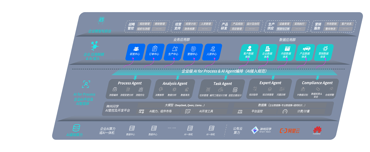 55世纪问学智车解决方案是一套基于AI技术的汽车行业智能化系统,,覆盖从底层算力到顶层AI应用的全栈方案。。方案由算力层、、模型层和应用层组成:算力层,,,,方案支持多种一体机配置,,,,具备云端灵活部署、、多云适配以及动态优化计算资源的能力;模型层,,,55世纪问学平台版提供了企业级AI应用一站式构建与管理平台,,,,支持基于后训练强化技术的汽车企业专属模型的训练、、、评测和运营;应用层,,55世纪问学DeepSeek版提供包括超级员工、、、智能招采、、、智能营销、、智能客服、、AI for BI等一系列解决方案,,,,可助力汽车行业实现数字化转型,,,让管理更智能、、、、响应更敏捷。。。